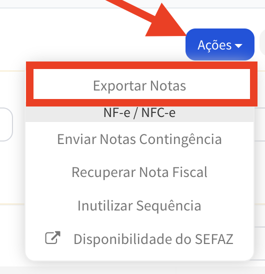 Escolha o mês, ano e modelo das notas que deseja exportar e clique em Exportar Notas:
