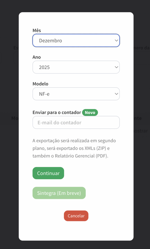 Poderá exportar o XML das notas fiscais emitidas no sistema e também gerar um relatório de notas emitidas em PDF. Ao exportar o XML as notas será mais fácil enviar ao contador ou mesmo guardar.