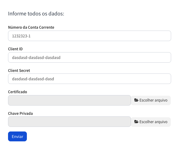 4) Baixe o certificado e a respectiva chave privada. Também copiar o seu Client Id e Client Secret.