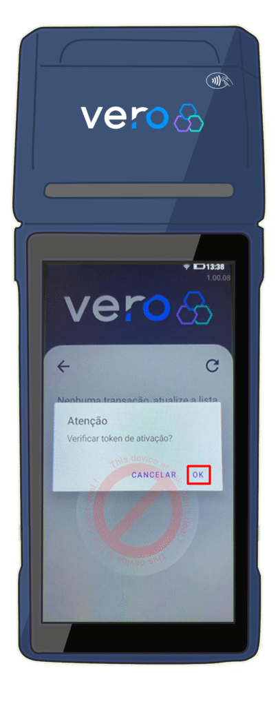 clique na seta, e em Verificar token de ativação, clique em OK: