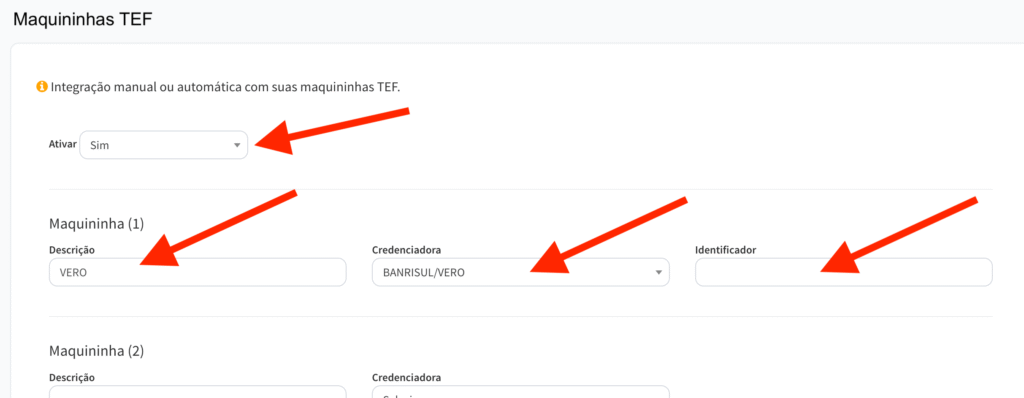 Agora já poderá adicionar o maquininha TEF: